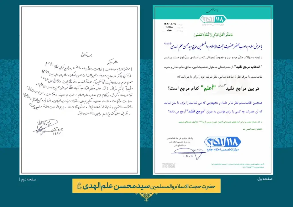 با عرض احترام به ساحت با قداست و عظمت و نورانی همه مراجع تقلید عظام دام‌عزهم، از آنجایی که در روایت معروف و صحیح السند امام حسن عسکری سلام‌الله‌علیه بعنوان رجوع عموم مردم در زمان غیبت باید به فقیهی که صائناً لنفسه وحافظاً لدينه و مخالفاً على هواه و مطیعاً لأمر مولاه باشد، رهبر معظّم انقلاب آیت‌الله سید علی حسینی خامنه‌ای دام‌عزه، تمام صفات ذکر شده در کلام امام معصوم علیه‌السلام به همراه جامعیّت و فقاهت و اصولی بودن ایشان و سیادت و شجاعت و عارف‌بودن و حکیم‌بودن و تقوای سیاسی و اجتماعی و اخلاقی و صبیح المنظر بودن ایشان و اشراف داشتن به نرم‌افزار اقتصاد جهانی و مسائل نظامی روز و پرچم‌دار بودن وحدت مسلمین جهان به نظر این حقیر كمترين، اعلم مراجع زمان حال می‌باشند.